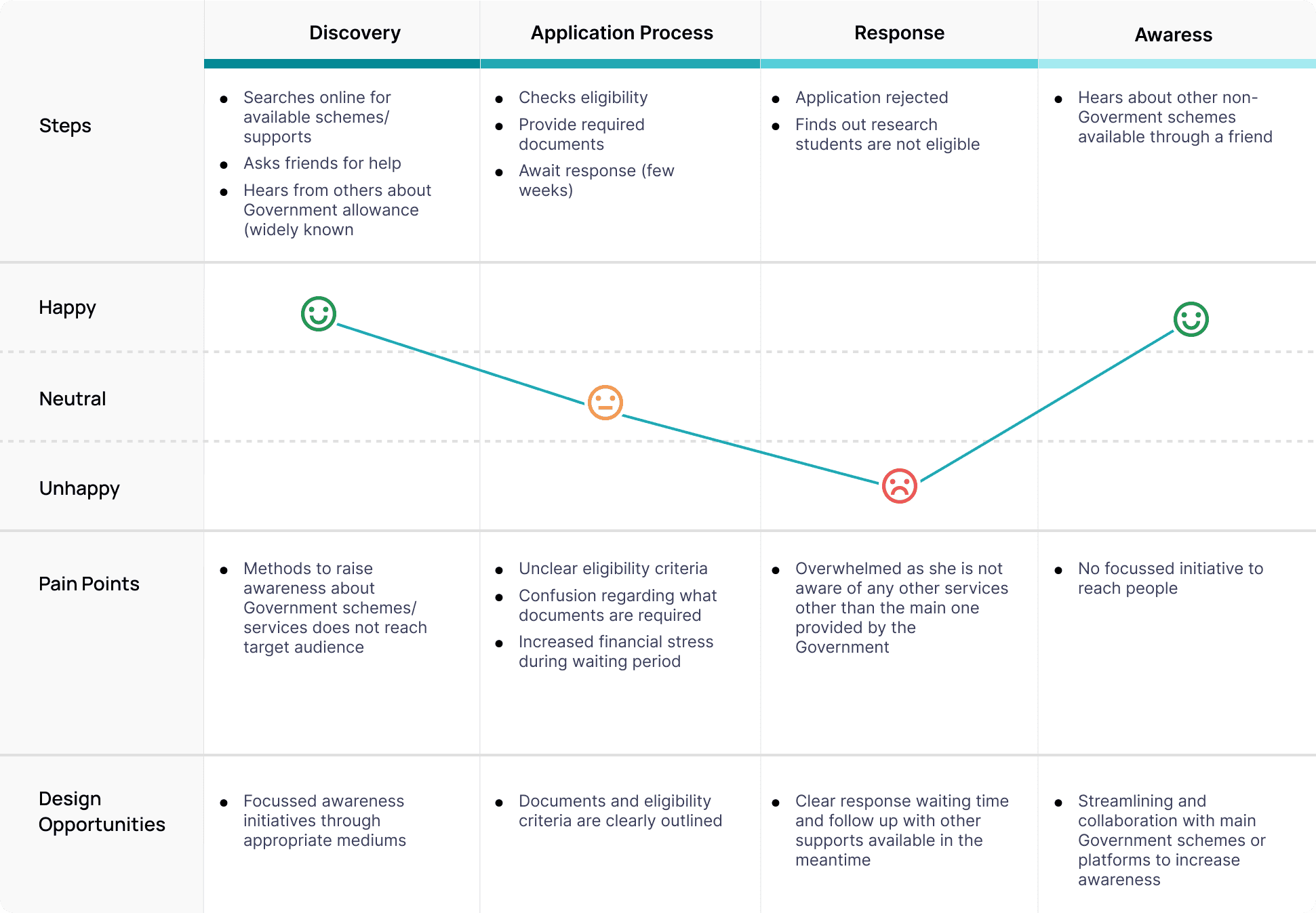 Users were frustrated with the tedious process having to communicate back and forth with services. Long waiting times also resulted in increased stress as users had no means of financial support during those times.