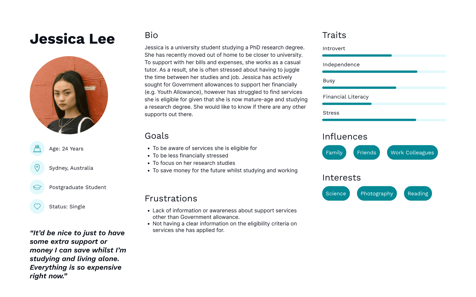 Being students ourselves, we empathised with this demographic. This led us down the path to investigate support systems for students to help reduce the cost of living pressure for younger generations.