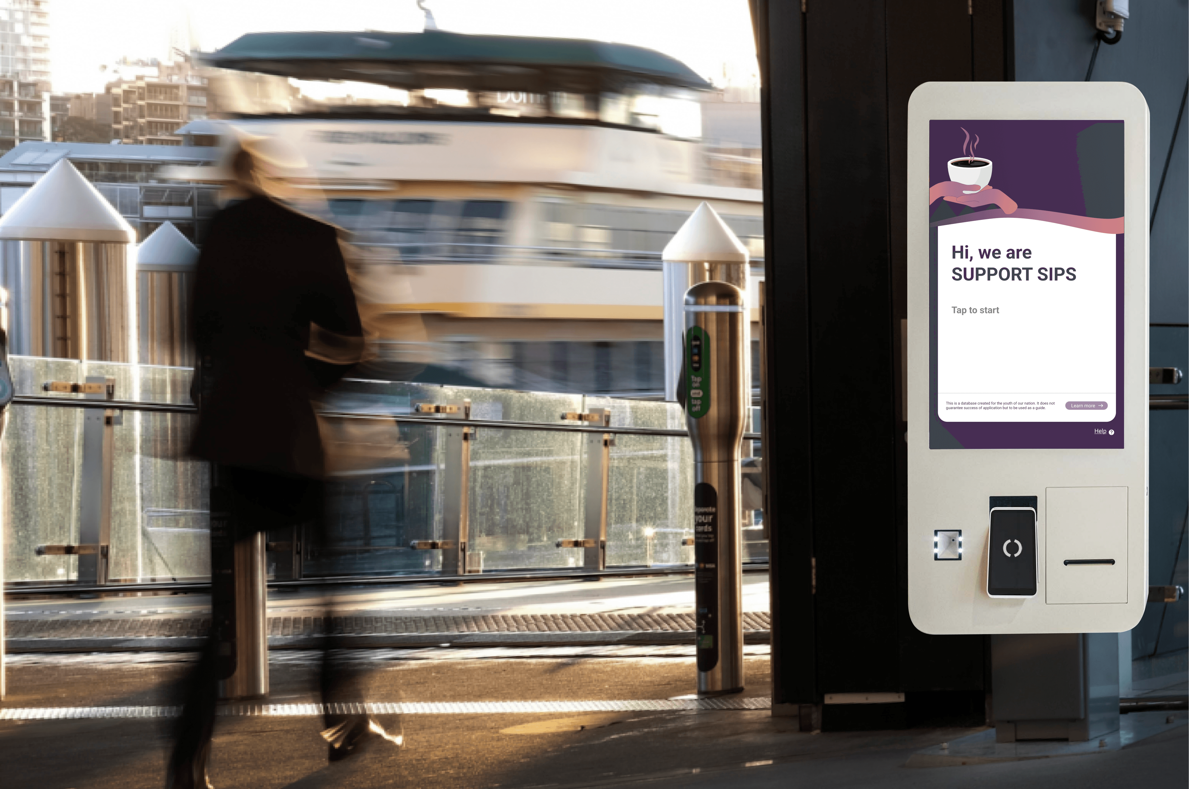 Matches users to relevant services from various organisations. These will be placed in high-density areas such as train stations where users may have less time.